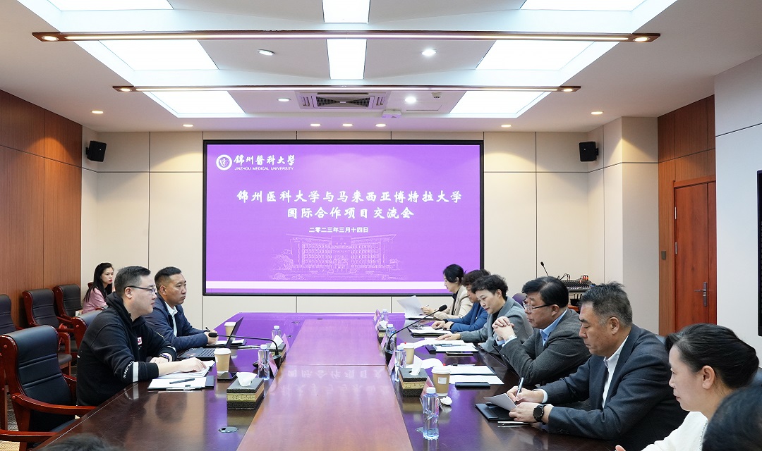 On March 14th, Jinzhou Medical University (JZMU) held an international exchange and cooperation project meeting with Universiti Putra Malaysia (UPM). Ding Weiguang, President of JZMU, Qu Wei, Vice-secretary of the Party Committee of JZMU, Wang Xu, Director of the China Center of UPM, and Li Mu, Director of the Northeast, China Center of UPM attended the meeting. The Deans of the School of Food and Health and the School of International Education also participated in the meeting. Zhu Xiaomei, Director of the Office of International Exchange and Cooperation, hosted the meeting.