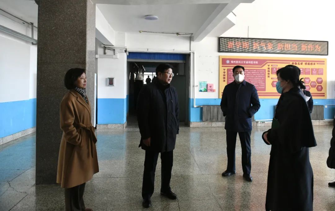 On February 24th, Ding Weiguang, President of Jinzhou Medical University (JZMU) led a team to conduct on-site investigation and guidance on the preparation for the new semester on the east campus, west campus, and campus of School of Stomatology. Qu Wei, Vice-secretary of the Party Committee of JZMU, and Zhang Lijuan, Vice-president, took part in the investigation.