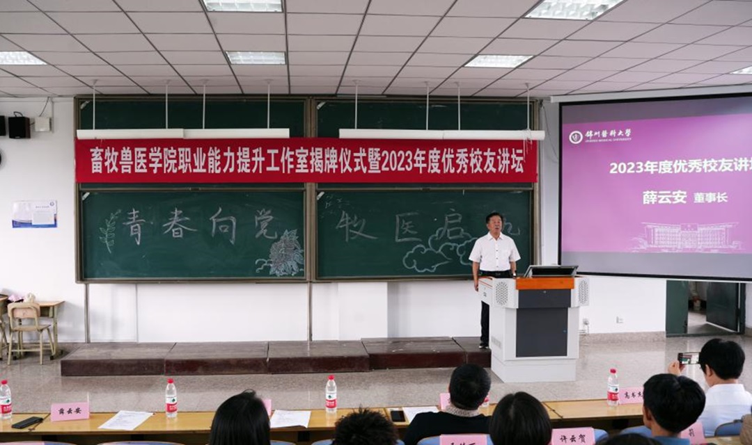 At the ceremony, Zhang Lijuan pointed out that universities are fertile ground for cultivating innovative spirit, and college students are the main force of young entrepreneurs. The establishment of the Professional Ability Enhancement Studio of the School of Animal Husbandry and Veterinary Medicine marks a brand new start for the innovation and entrepreneurship work of the school. She stated that alumni from all over the country had always been paying close attention to the development of the university and have been giving back to their alma mater through every possible means, contributing their efforts to the construction and development of the alma mater. The cooperation between the School of Animal Husbandry and Veterinary Medicine and the enterprises is a good example of alumni’ gratitude to their alma mater.