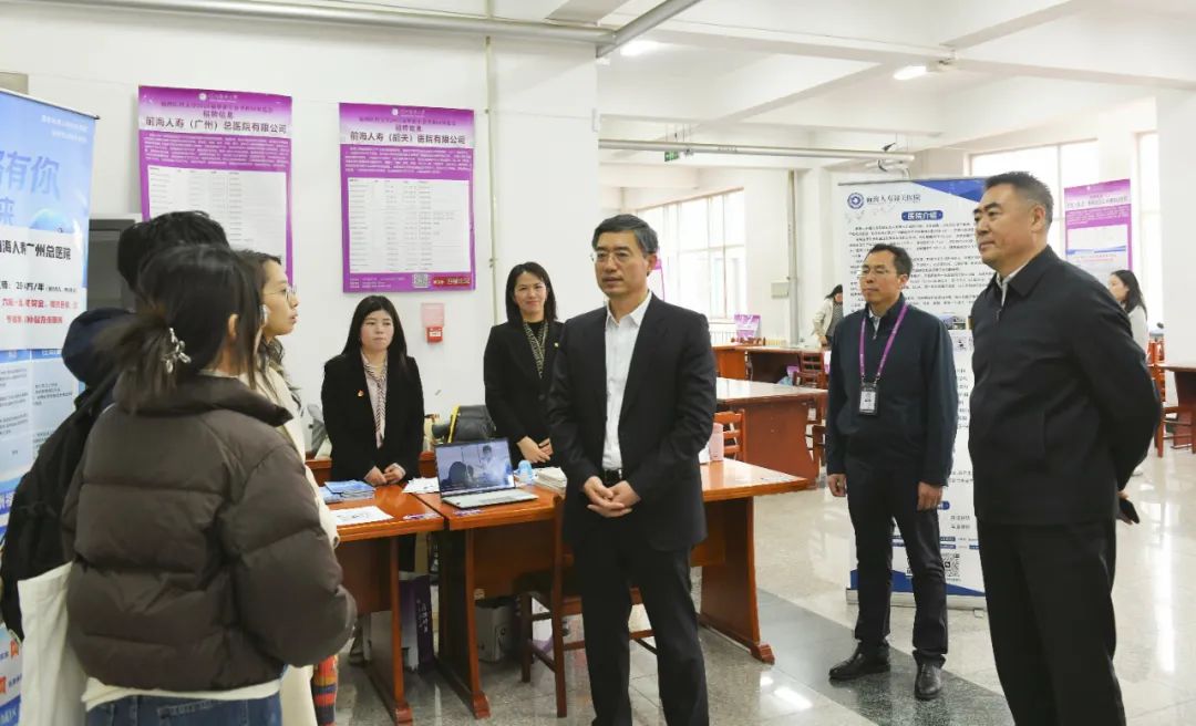 闻德亮一行在招聘会现场深入了解毕业生的就业想法和用人单位对人才的实际需求,感谢用人单位长期以来对学校就业工作的支持和对毕业生的肯定,希望用人单位持续支持学校事业发展和锦医学子成长成才,为毕业生学以致用、服务社会、建功立业提供平台。闻德亮强调,党中央和国务院高度重视高校毕业生就业工作,学校各级党组织及各学院和职能部门要深入学习贯彻习近平总书记重要指示精神,更加突出就业优先导向,高度重视、各司其职、群策群力、千方百计做好学校毕业生就业工作。要用心用情做好就业指导帮扶工作,持续开展就业观念教育,引导毕业生树立正确的择业观、就业观。要积极抢抓当前2025届毕业生就业关键期,织密就业服务网,常态化、多批次开展招聘活动,做好线上与线下联动,精准对接用人单位和2025届毕业生,实现岗位需求与人才求职的“双向奔赴”,切实把就业工作落到实处。