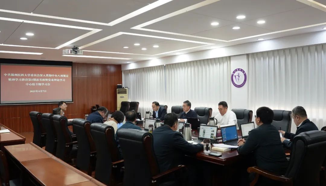 闻德亮指出,党的十八大以来,习近平总书记围绕加强党的作风建设发表一系列重要论述,立意高远,内涵丰富,思想深刻,赋予作风建设新的时代内涵,深化了作风建设规律性认识。在“十四五”规划收官、“十五五”谋篇布局之年,在全面建设社会主义现代化国家的奋进征程上,以习近平同志为核心的党中央作出在全党开展深入贯彻中央八项规定精神学习教育的重大决策部署,这是巩固深化主题教育和党纪学习教育成果、纵深推进全面从严治党的重要举措,再次向全党释放了作风建设永远在路上的强烈信号,抓作风建设只有进行时,没有完成时。再次向全党宣示了中央八项规定是长期有效的铁规矩、硬杠杠,表明常抓不懈、久久为功的坚定决心。学校各级党组织和党员干部要把学习贯彻习近平总书记关于加强党的作风建设的重要论述和中央八项规定及其实施细则精神作为当前和今后一个时期的重要政治任务,要有党的意识、家国情怀和使命担当,更要深刻认识到,加快推进学校“123510”发展战略,真正实现学校“十四五”规划目标和全面振兴新突破决胜任务,早日成为博士学位授予权单位,新校园接续建设工程年内破土开工,都需要我们不断加强和改进作风建设,以坚定的理想信念、坚强的意志品格、过硬的能力本领、扎实的工作作风推进学校事业改革发展与稳定,以全面从严治党和作风建设的新成效推进学校事业高质量发展,加快特色鲜明的高水平医科大学建设步伐。