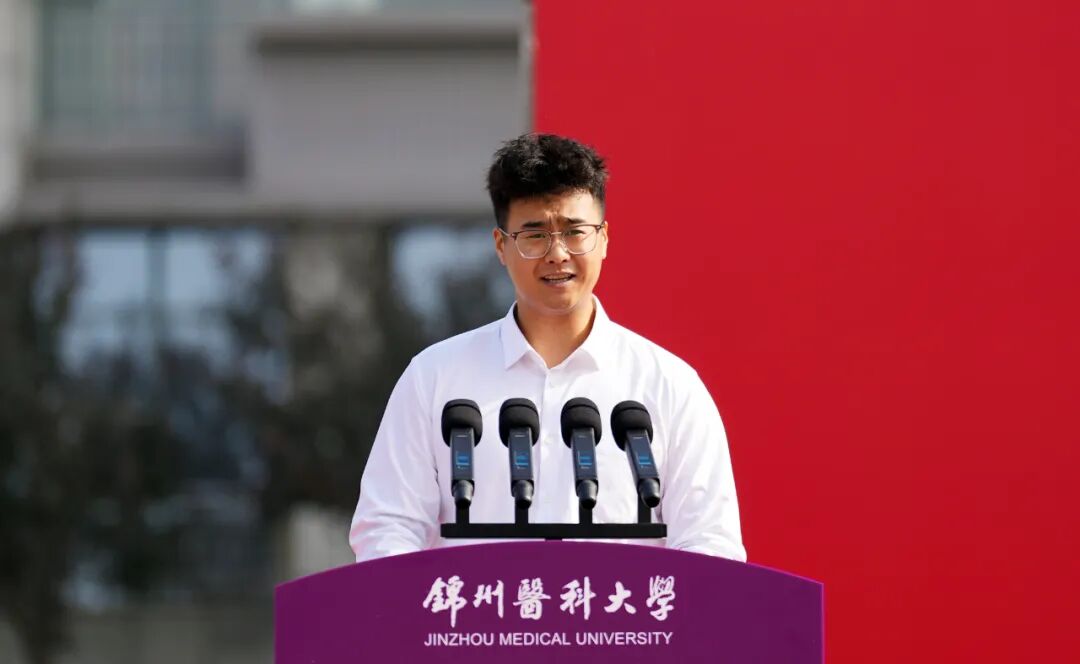 “期盼与学识渊博的老师深入交流,在严谨求实的实验室里感受科学探索的神奇魅力”“期盼在丰富多彩的社团活动中结识志同道合的挚友”“憧憬有一天能穿上神圣的白大衣,跟随老师的脚步,穿梭于病房之间,体会‘除人类之病痛,助健康之完美’的价值与成就”……面对新的起点、新的征程,第三临床医学院临床医学专业姜宇涵同学作为新生代表分享了她作为“新锦医人”的初心与梦想,畅谈对未来的规划与展望。他表示,将传承锦医精神,勇担时代重任,为强国建设、民族复兴贡献自己的青春力量。