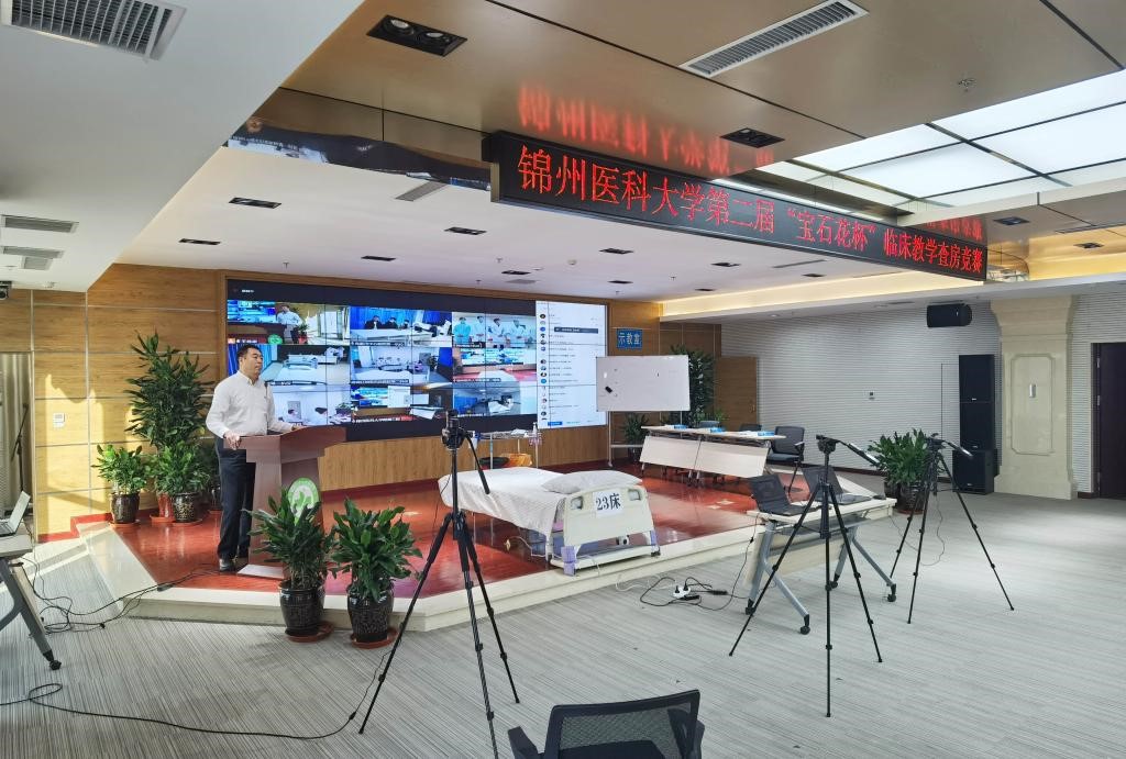 曲巍为大赛致辞,他指出,今年是“十四五”开局之年,学校正向着建设高水平有特色的应用型医科大学的目标迈进,而应用型医科大学建设要以培养社会和行业需求的医学应用型人才为目标,就要求我们要从教学体系建设中体现“应用”二字,其核心环节是实践教学,通过切实有效的方法和手段提高医学生的临床思维能力和实践动手能力。教学查房是培养医学生临床思维及基本技能的一项重要教学手段,也是提升医学生的实践能力和团结协作精神的有效途径,对全面提升学生临床思维能力,加强临床教师队伍建设,促进临床教学医院发展起着重要作用。因此,建立科学化、规范化、标准化的教学查房训练体系和竞赛模式也是顺应高等医学教育改革的必然要求。因为疫情防控的需要,本次竞赛采取线上直播方式进行,希望各教学医院以本次比赛为契机,进一步加强教育信息化建设,推动线上教学的可持续发展,提升教师临床带教水平和带教能力,提高教学医院整体业务水平和临床教学质量。