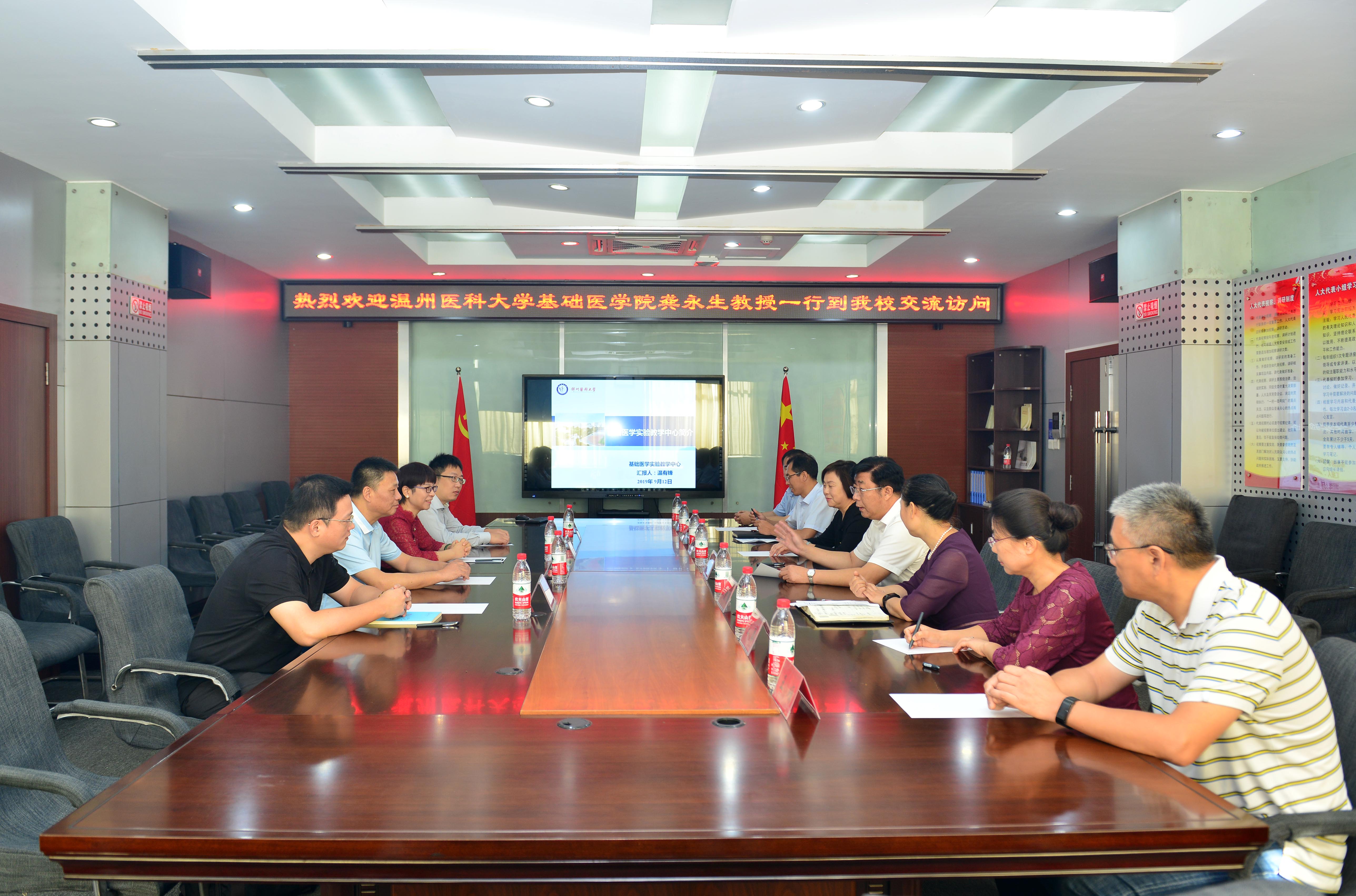 9月12日,中国病理生理学会常务理事、机能学实验教学工作委员会主任委员、温州医科大学基础医学院院长龚永生教授一行4人来到beat365,考察交流实验中心建设工作暨2021年全国青年教师机能学实验技能大赛承办的准备工作。学校校长丁维光出席交流会并讲话,基础医学院、基础医学实验教学中心全体班子成员参加交流。