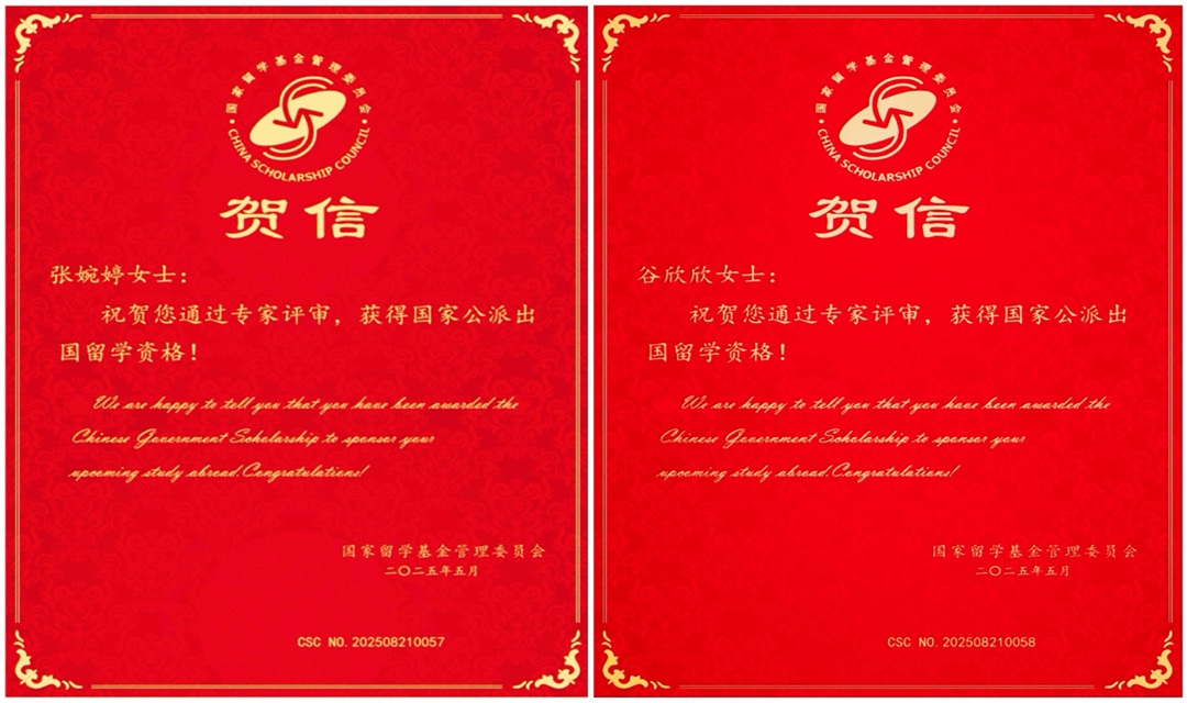 近日,国家留学基金委员会公布了“2025年国家建设高水平大学公派研究生项目”的入选名单,beat365两名优秀研究生,第一临床医学院的张婉婷同学和第三临床医学院的谷欣欣同学成功获得该项目国家公派出国留学资格。