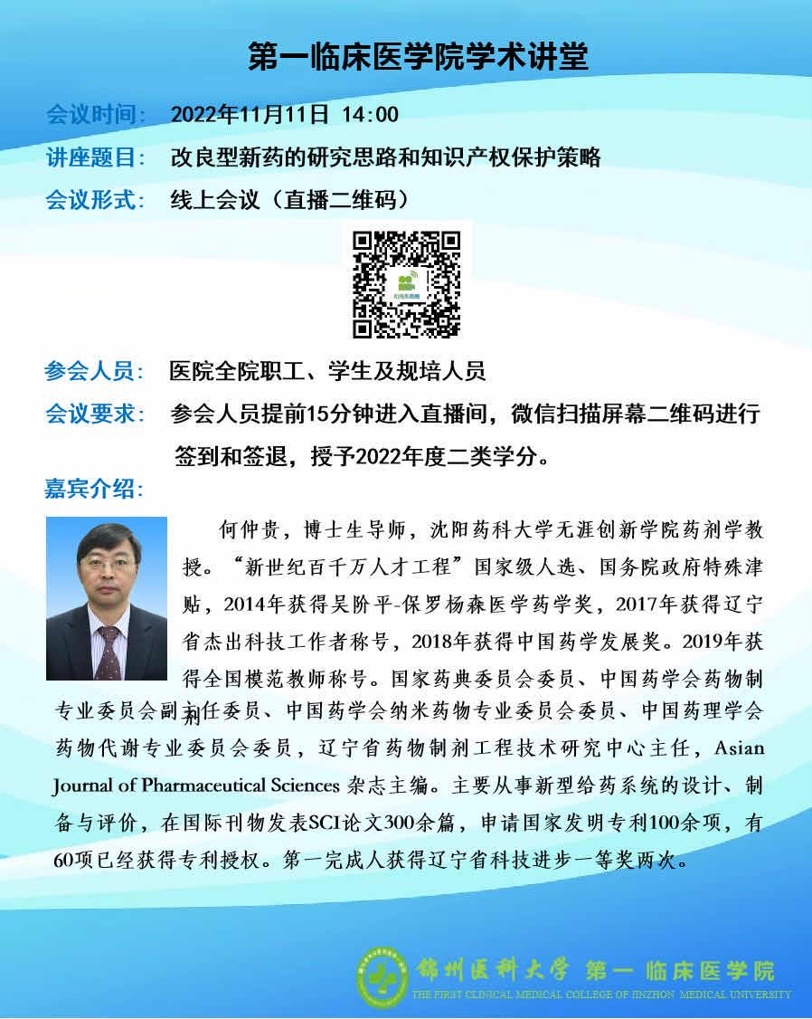 为营造学术氛围,提升学术交流质量,11月11日,由学校主办,药学院、第一临床医学院、基础医学院、口腔医学院承办的学术讲堂如期举行,届时多名专家将为大家带来精彩的学术讲座,希望全校师生踊跃参加!