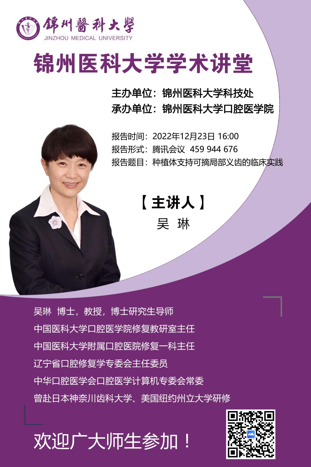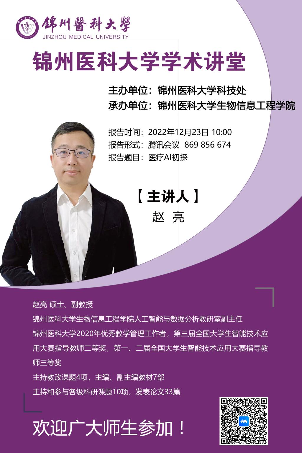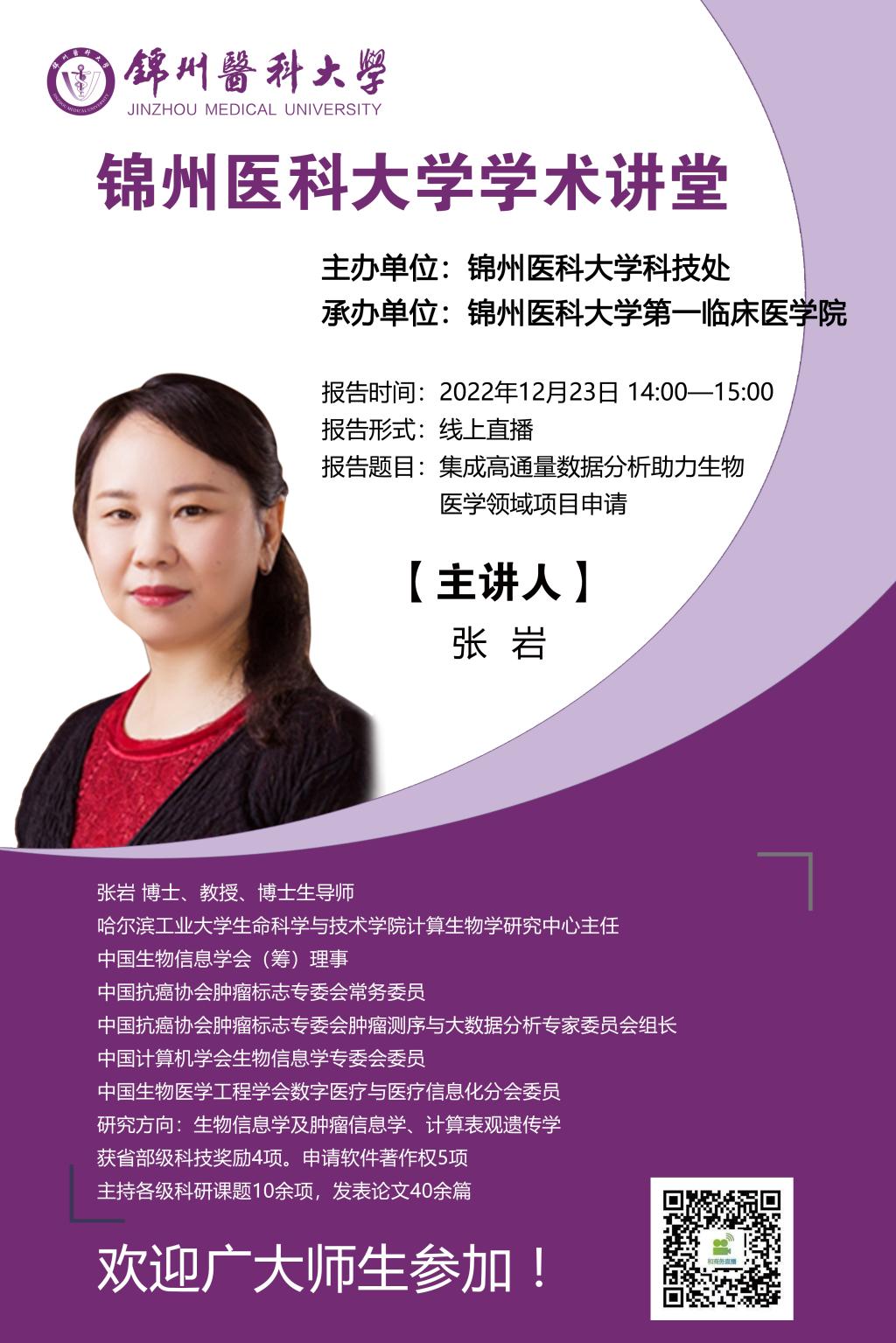 为营造学术氛围,加强学术交流,12月23日,由学校科技处主办,第一临床医学院、口腔医学院、生物信息工程学院承办的学术讲堂如期举行,届时多名专家将为大家带来精彩的学术讲座,希望全校师生踊跃参加!