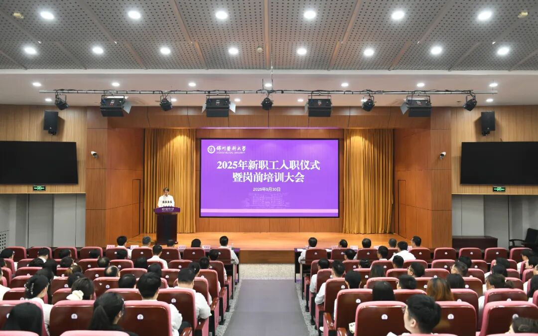 为全面贯彻党的教育方针,落实立德树人根本任务,夯实教师队伍发展根基,帮助新入职教师快速适应学校教育教学与管理工作,提升专业素养与综合能力,明确职业发展方向,9月30日,学校举办2025年新职工入职仪式暨岗前培训大会。学校党委书记闻德亮,党委副书记、校长曲巍等党委常委、校领导出席会议。学校各学院党政负责人和相关部门负责人参加会议。会议由党委常委、副校长李振兴主持。