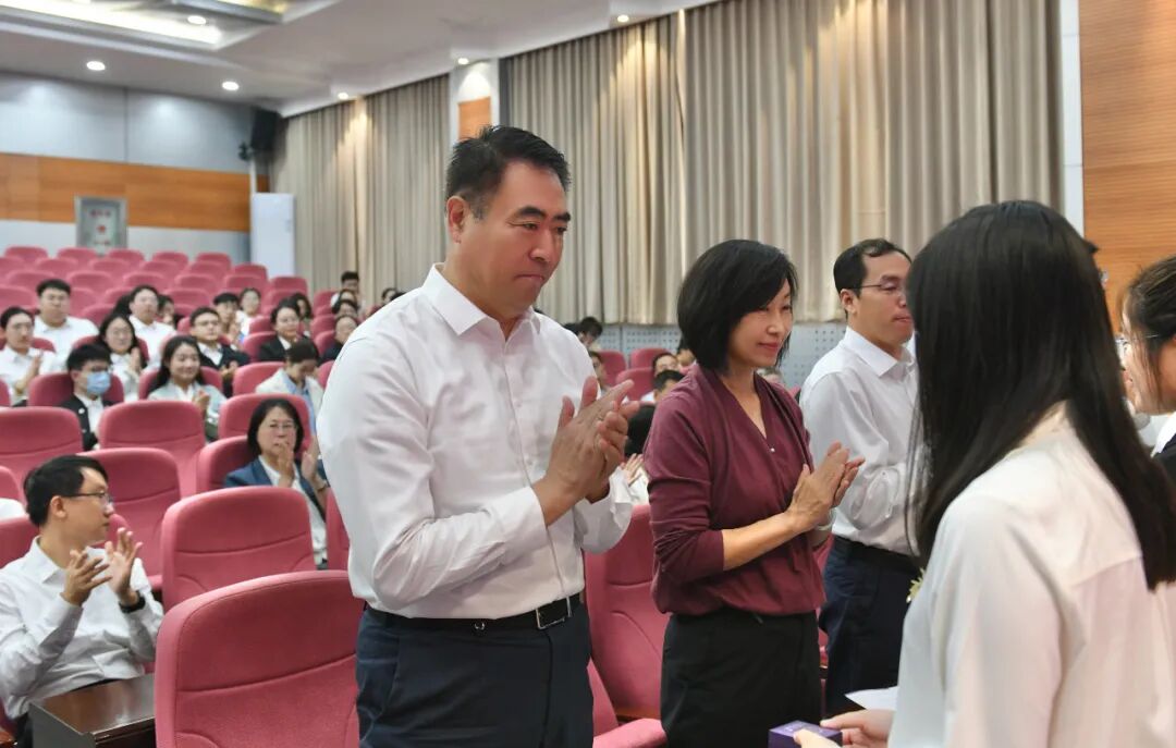 学校第一临床医学院博士研究生刘亿琦代表全体新入职教工发言。他表示,要坚定理想信念,提升政治站位;永葆学习热情,锤炼过硬本领;恪守职业道德,常怀仁爱之心;积极融入团队,勇于担当作为,以最大的努力、最谦逊的态度、最坚定的初心,快速成长,砥砺前行,不负韶华,不负期望,为锦医更加美好的明天贡献全部的光和热。