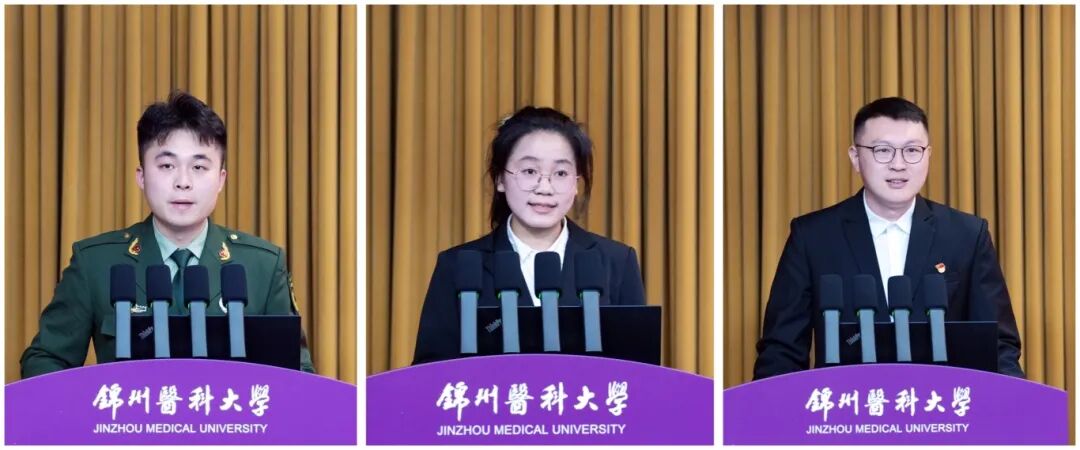 口腔医学院口腔医学专业2023级31班班长赵广宁,学校优秀大学标兵获得者、第三临床医学院临床医学专业2022级本科生杨丹丹,国家奖学金获得者、第一临床医学院肿瘤学专业2023级硕士研究生李宁先后代表先进集体和个人发言。